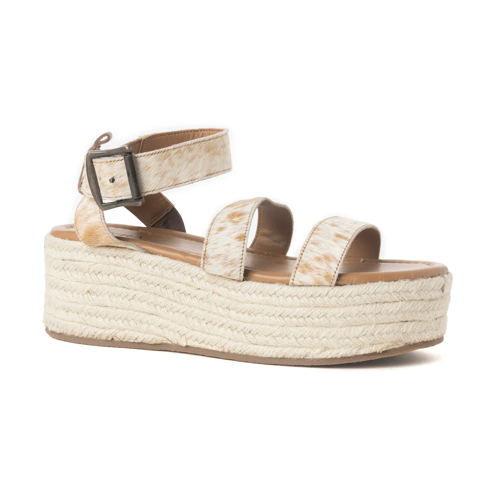 Longhorn Lasso Leather Sandals in Brown & White Hairon
