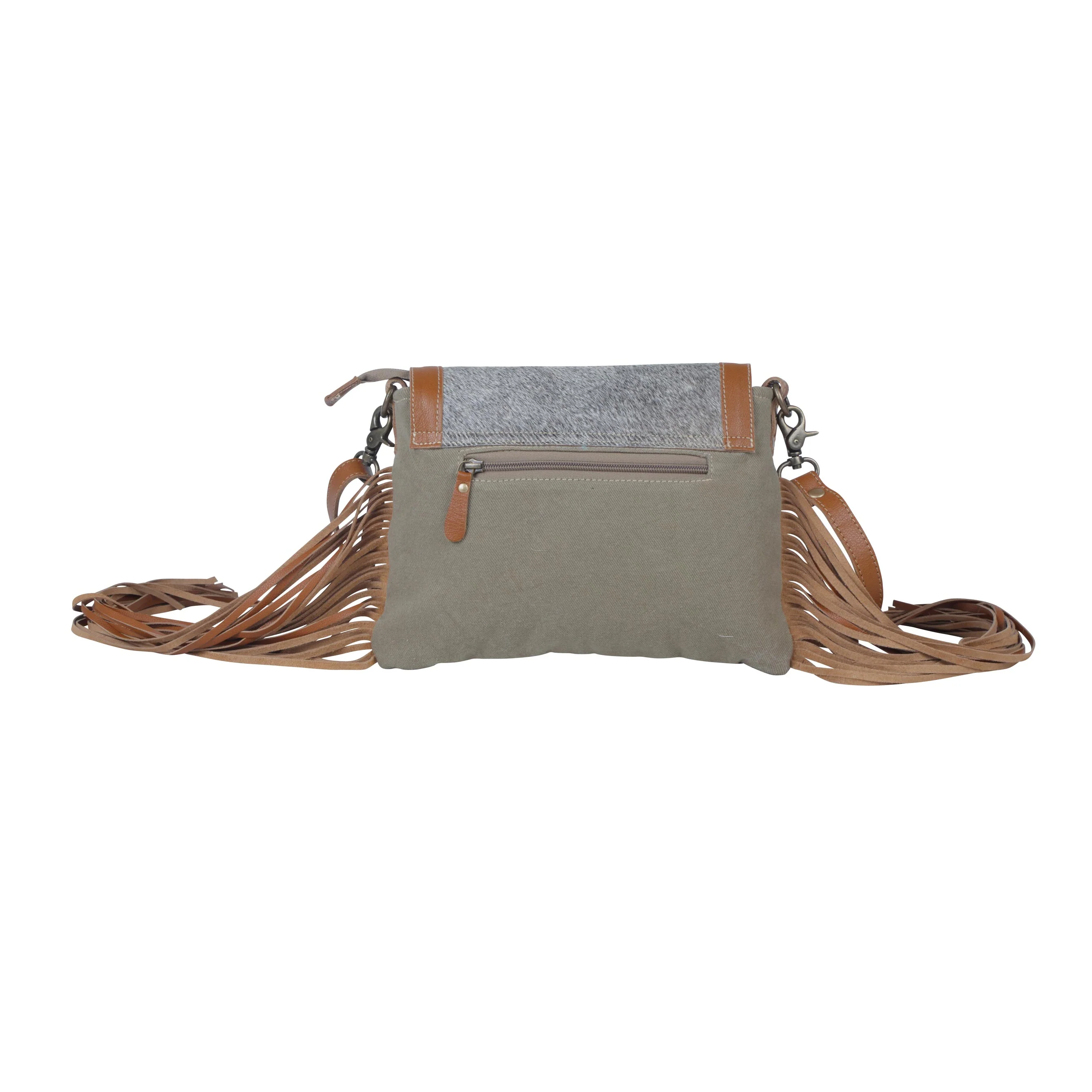 A cross body bag with ample space and fringes on both sides. It comes with inside pockets and the rear panel is recycled from rug to provide a long-lasting use.