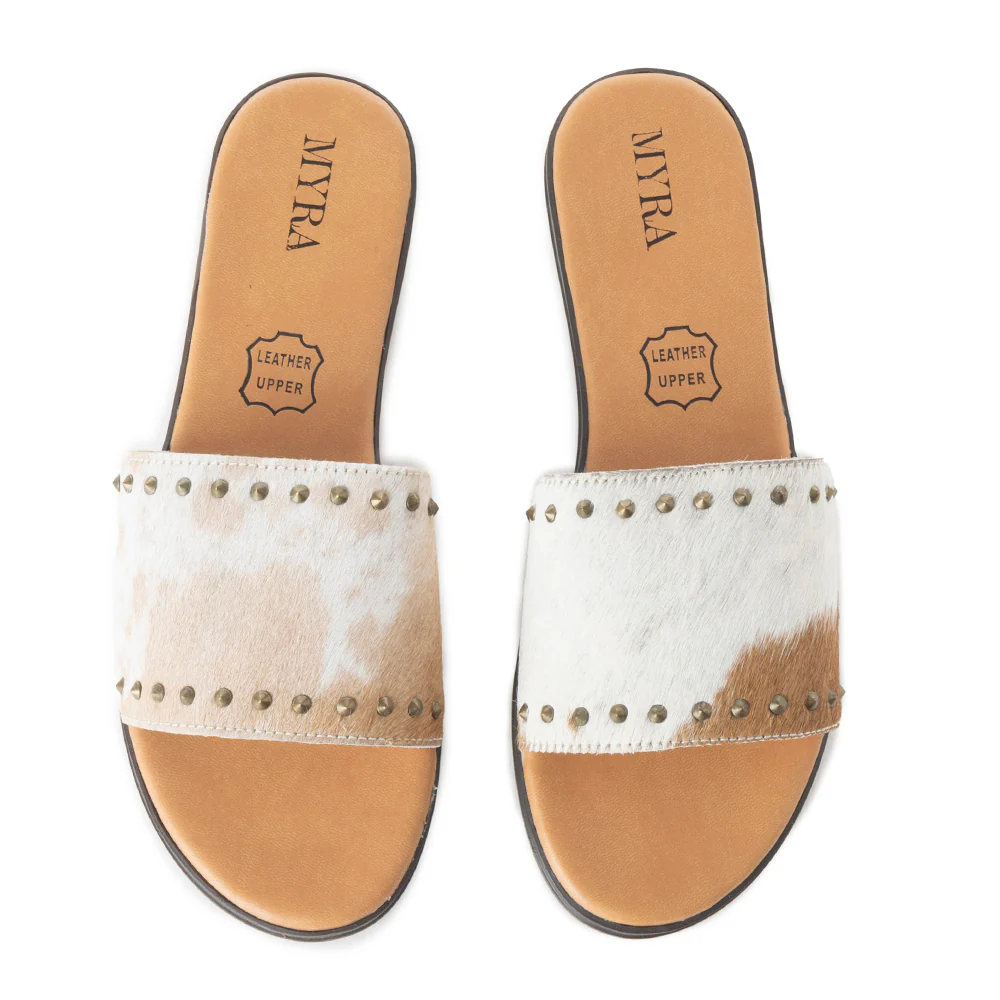 This versatile pair of flats looks edgy and fashionable. The metallic cone rivents complement the aesthetic of the pair and the foot bed offers a comfortable feel to the feet.