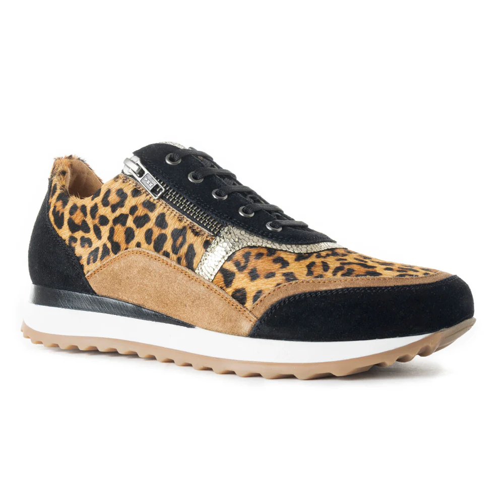 These sport shoes have a fierce look because of the leopard print pattern which is crafted from genuine cowhide leather. The comfortable foot bed is perfect for a run
